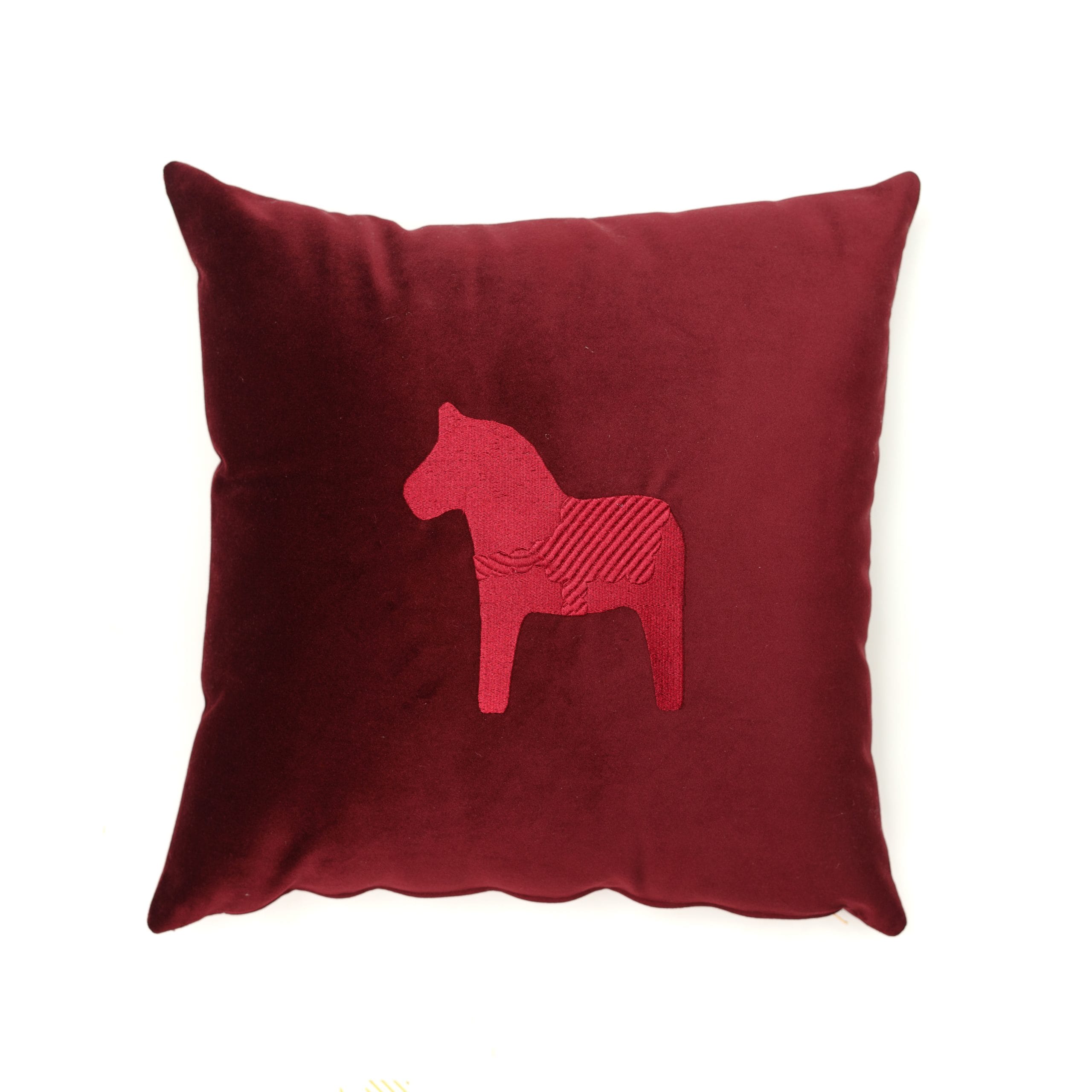 The mono cushion featuring the Dala horse design is a striking addition to any living space, combining richness with Swedish cultural significance. Whether placed on a sofa, chair, or bed, this cushion not only provides subtle boldness but also infuses the room with a touch of charm and heritage, celebrating the beauty of Scandinavian culture.